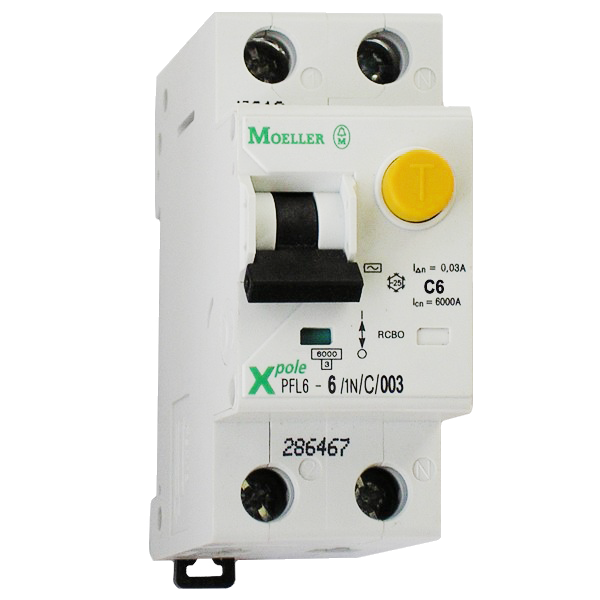 | Вимикач диференційний автоматичний PFL6 1+N-пол. кат. B Eaton | 6,0kA | 30mA | 6, 10, 13, 16, 20, 25, 32, 40A |